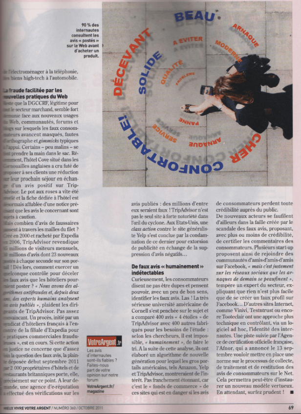 Mieux Vivre Votre Argent consacre ce mois-ci sa rubrique ‘Les coulisses de l’argent’ à l’actualité des faux avis sur internet.