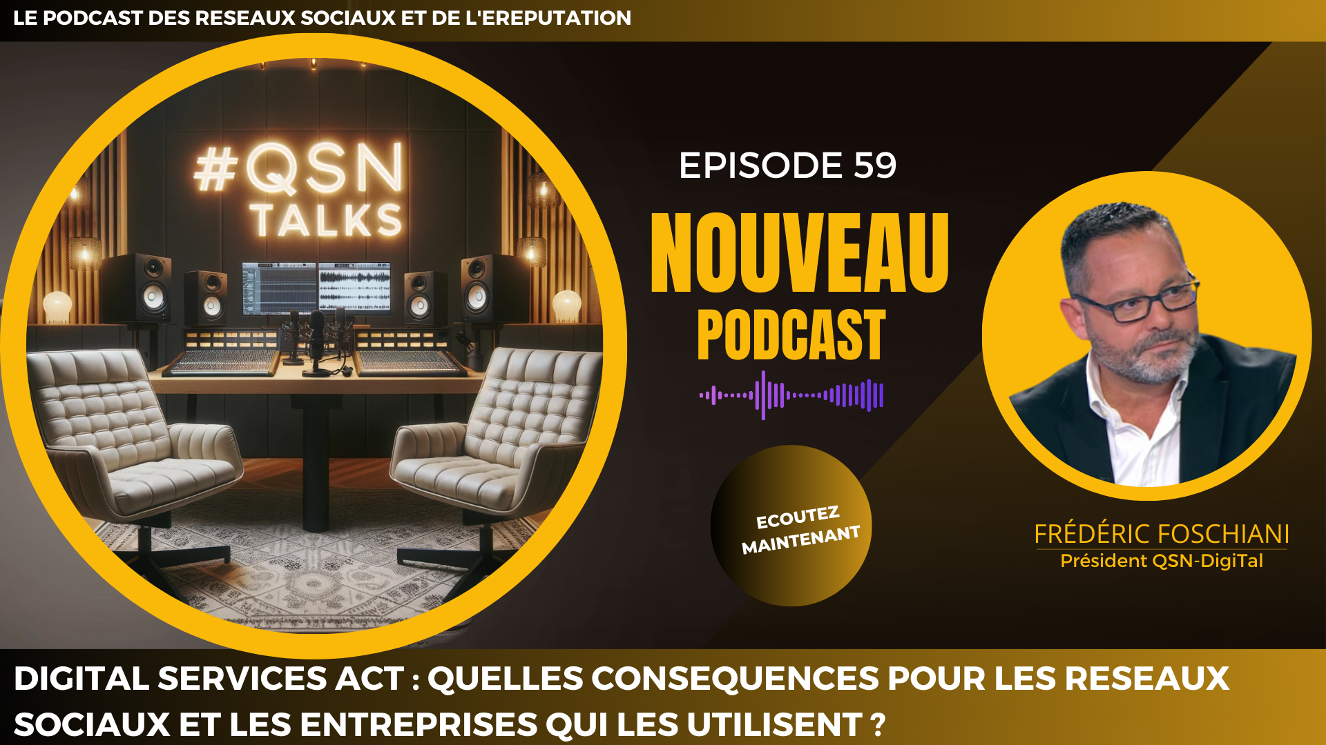 Cet article est la retranscription de l’épisode du podcast #QSNTALKS – Episode 59 : Le Digital Services Act (DSA) : quelles conséquences pour les réseaux sociaux et les professionnels qui les utilisent ?