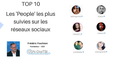 2) Réseaux sociaux, Enquêtes et chiffres clés, Réseaux sociaux TOP 10 des ‘People’ les plus suivies sur les réseaux sociaux 8 septembre 2018 — 0 Commentaire